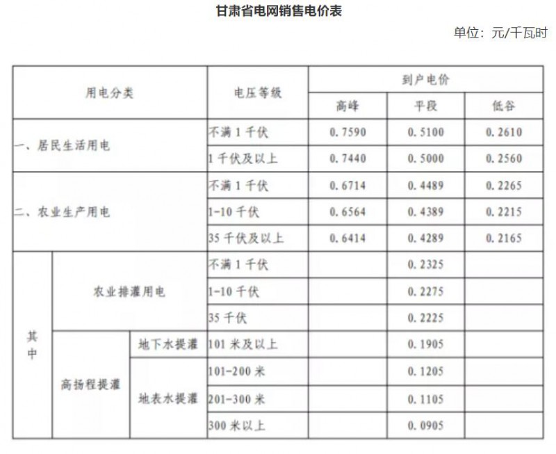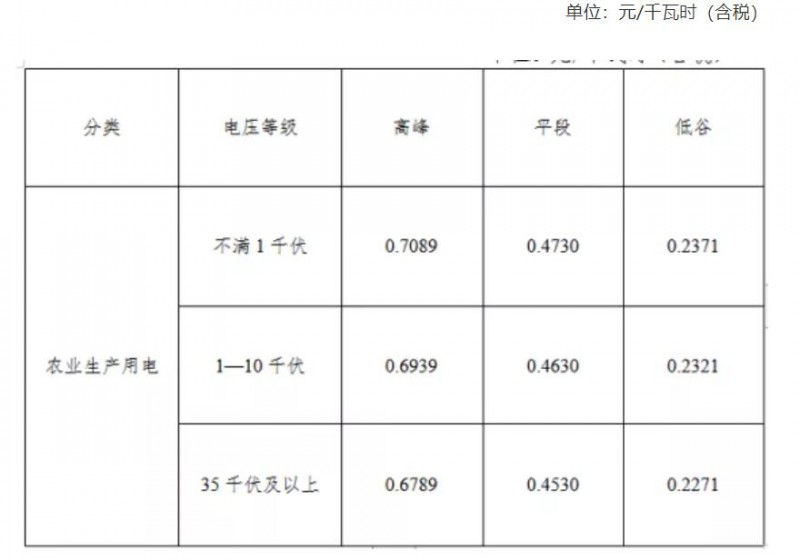 備注:農(nóng)業(yè)排灌、抗災(zāi)救災(zāi)用電,按上表所列分類電價(jià)降低2分錢(農(nóng)網(wǎng)還貸資金)執(zhí)行。