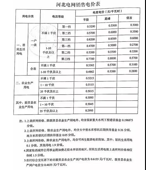 注:1、上表所列價(jià)格,除已摘帽貧困縣農(nóng)業(yè)排灌用電外,均含國(guó)家重大水利工程建設(shè)基金0.15525分錢。2、上表所列價(jià)格,居民生活用電含可再生能源電價(jià)附加0.1分錢,含大中型水庫(kù)移民后期扶持基金0.62分錢。