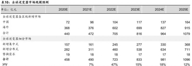 此外,擴(kuò)產(chǎn)難也是國(guó)產(chǎn)芯片廠家面臨的一大問(wèn)題。據(jù)了解,國(guó)內(nèi)芯片新廠,從落地到驗(yàn)證產(chǎn)線所需時(shí)間一般為1-3年,這也就意味著新增產(chǎn)能釋放需要較長(zhǎng)時(shí)間。業(yè)內(nèi)專家推測(cè),在2022年6月份左右將迎來(lái)國(guó)產(chǎn)芯片的較大規(guī)模釋放,逆變器芯片供需將重新達(dá)到平衡的時(shí)間點(diǎn)。四、未來(lái)展望在全球碳中和目標(biāo)共識(shí)下,光伏風(fēng)電等可再生能源發(fā)電形式迎來(lái)前有未有的發(fā)展機(jī)遇,逆變器芯片市場(chǎng)也必將是一片開(kāi)闊。據(jù)中金研究咨詢機(jī)構(gòu)預(yù)測(cè),到2025年全球光伏逆變器市場(chǎng)規(guī)模將增長(zhǎng)至1096億元人民幣。按IGBT占逆變器價(jià)值量20%來(lái)算,2025年全球光伏逆變器用IGBT的市場(chǎng)規(guī)模將達(dá)到274億元人民幣。