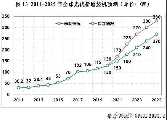 2022、2023年硅料產(chǎn)量預(yù)計(jì)分別為:83萬(wàn)噸(76.73-89.35萬(wàn)噸取中值)、126萬(wàn)噸(123.05~129.3萬(wàn)噸取中值,則2022、2023年硅料可支撐組件產(chǎn)量預(yù)計(jì)分別為:296GW、466GW,比2021年新增51%、137%,環(huán)比新增51%、57%,而中國(guó)光伏協(xié)會(huì)CPIA預(yù)測(cè)2022、2023年裝機(jī)中位值為205GW、240GW,乘以1.2容配比后對(duì)應(yīng)組件需求:245GW、290GW,由此未來(lái)硅料價(jià)格走勢(shì)不言而喻了。