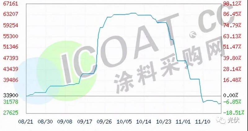 有機(jī)硅則隨著工業(yè)硅價(jià)格下行,行情急轉(zhuǎn)直下,目前報(bào)價(jià)在31000-32000元/噸左右,較10月初63000元/噸的高位幾近腰斬。聊城芫澤化工、山東東岳化工、山東魯西化工報(bào)價(jià)在30400元/噸左右,短短兩個(gè)月價(jià)格暴跌32000元/噸。
