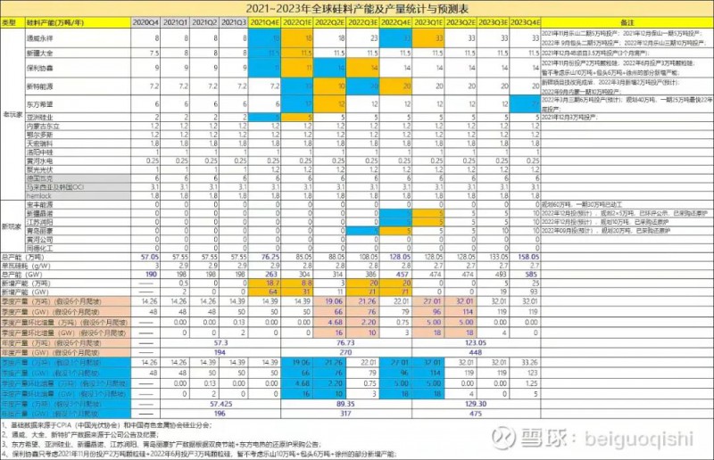 硅料廠新增產(chǎn)能平均6個(gè)月爬坡至滿(mǎn)產(chǎn)的保守假設(shè)下,2021、2022、2023年全球硅料產(chǎn)能預(yù)計(jì)分別為:57.3萬(wàn)噸、76.73萬(wàn)噸、123.05萬(wàn)噸,可以分別支撐組件裝機(jī)194GW、270GW、448GW;