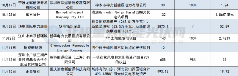 正泰之后,中廣核以658MW電站出售規(guī)模排名賣方市場第四。11月12日,新加坡勝科工業(yè)宣布已通過全資子公司勝科能源投資(上海)有限公司簽署股權(quán)購買協(xié)議,將以33億元收購深圳中廣核三期產(chǎn)業(yè)投資基金合伙企業(yè)及其附屬公司一項(xiàng)在營風(fēng)電和太陽能資產(chǎn)組合98%的權(quán)益,涉及電站10個(gè),總裝機(jī)658MW。據(jù)了解,此次收購預(yù)計(jì)將于明年上半年完成。