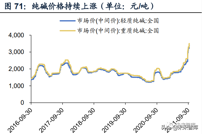 (2)短期景氣度:光伏玻璃供過于求,純堿及天然氣成本上行壓力難以向下順漲,盈利持續(xù)壓縮。信義光能、福萊特等新增產(chǎn)線陸續(xù)達(dá)產(chǎn),部分在建產(chǎn)線也已具備點(diǎn)火條件,后續(xù)供給有望增加,但由于硅料帶動(dòng)主產(chǎn)業(yè)鏈漲價(jià),組件對(duì)光伏玻璃的需求支撐不足,庫(kù)存或呈增加趨勢(shì),同時(shí)光伏玻璃行業(yè)又面臨純堿及天然氣價(jià)格快速上漲的成本壓力,根據(jù)卓創(chuàng)資訊,2021年7月,國(guó)內(nèi)3.2mm光伏玻璃原片成本價(jià)格約16.22元/平,行業(yè)平均毛利率為1.87%,8月以來純堿及天然氣價(jià)格連續(xù)上漲,光伏玻璃成本進(jìn)一步上行,恐將擊穿部分二三線廠商成本線,利潤(rùn)持續(xù)承壓。