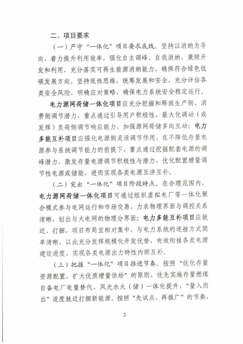 多能互補(bǔ)項(xiàng)目:優(yōu)先依托存量煤電項(xiàng)目實(shí)施風(fēng)光火(儲)一體化項(xiàng)目,鼓勵(lì)通過開展火電靈活性改造,合理配置儲能、儲熱等裝備增加系統(tǒng)調(diào)峰能力,允許利用近區(qū)核準(zhǔn)在建及核準(zhǔn)未建煤電項(xiàng)目建設(shè)風(fēng)光火(儲)一體化項(xiàng)目,嚴(yán)控增量煤電風(fēng)光火(儲)一體化項(xiàng)目。鼓勵(lì)結(jié)合小型抽水蓄能等具有靈活調(diào)節(jié)能力的設(shè)施開展風(fēng)光水火(儲)一體化項(xiàng)目。項(xiàng)目調(diào)峰能力應(yīng)真實(shí)有效,不應(yīng)占用系統(tǒng)調(diào)峰能力。
