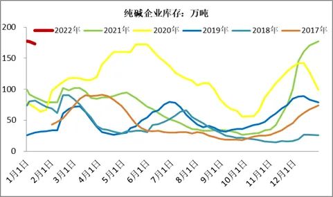 圖5 純堿生產(chǎn)企業(yè)庫存(萬噸)