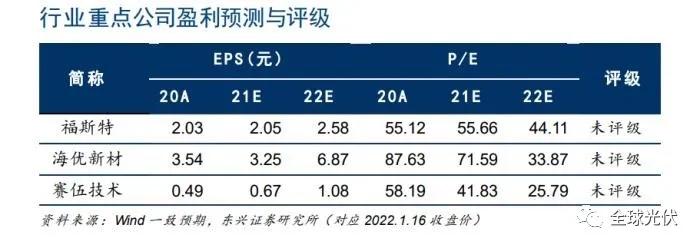 東興證券認(rèn)為,展望2022年,膠膜的年化產(chǎn)能遠(yuǎn)低于硅片、電池片等其他環(huán)節(jié),膠膜銷售價(jià)格有望持續(xù)堅(jiān)挺。隨著上游原材料供應(yīng)瓶頸得到緩解,成本端壓力有望得到釋放。膠膜行業(yè)的議價(jià)能力和盈利能力均有望在22年迎來(lái)拐點(diǎn)。長(zhǎng)遠(yuǎn)來(lái)看,膠膜作為光伏組件的關(guān)鍵輔材之一,市場(chǎng)規(guī)模將持續(xù)擴(kuò)容,產(chǎn)品結(jié)構(gòu)將持續(xù)優(yōu)化,二線企業(yè)將迎來(lái)競(jìng)爭(zhēng)洗牌的突圍機(jī)遇期。