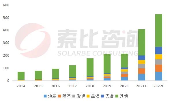 2021年底全球電池片產(chǎn)能達(dá)407GW,預(yù)計(jì)2022年底達(dá)540GW,產(chǎn)能過剩。