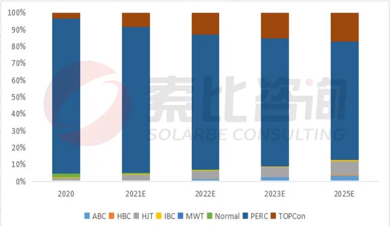 圖:電池片技術(shù)市占率變化趨勢(shì)