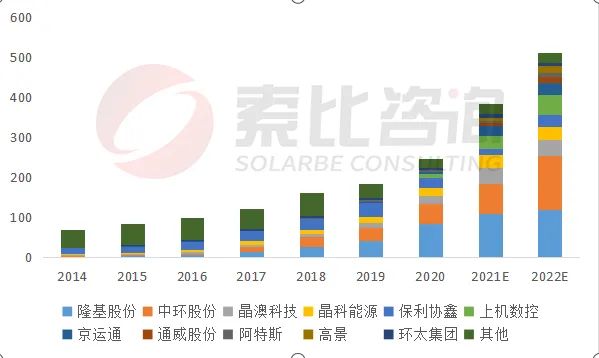 2021年底全球硅片產(chǎn)能366GW,索比咨詢預(yù)計(jì)2022年底硅片產(chǎn)能將達(dá)515GW,硅片產(chǎn)能供過于求。伴隨高景太陽能、雙良節(jié)能等新玩家重資入場(chǎng),新老玩家競(jìng)爭(zhēng)將加劇中小企業(yè)淘汰,雙寡頭局面或更改。