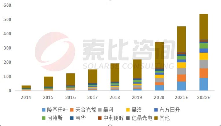 圖:組件產(chǎn)能變化趨勢(shì)(單位:GW)