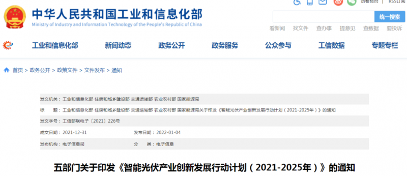 2022年1月4日,工信部等五部門聯(lián)合印發(fā)《智能光伏產(chǎn)業(yè)創(chuàng)新發(fā)展行動計劃(2021-2025年)》,其中的主要任務(wù)就包括助力“智能光伏交通”在內(nèi)的各領(lǐng)域碳達峰碳中和。加快“光伏+交通”等融合發(fā)展項目推廣應(yīng)用,推動交通領(lǐng)域光伏電站及充電樁示范建設(shè)。堅持充分論證、因地制宜、試點先行的原則,鼓勵光伏發(fā)電在公路服務(wù)區(qū)(停車場)、加油站、公路邊坡、公路隧道、公交貨運場站、港口碼頭、航標(biāo)等導(dǎo)助航設(shè)施、碼頭躉船、海島工作站點等領(lǐng)域的應(yīng)用。