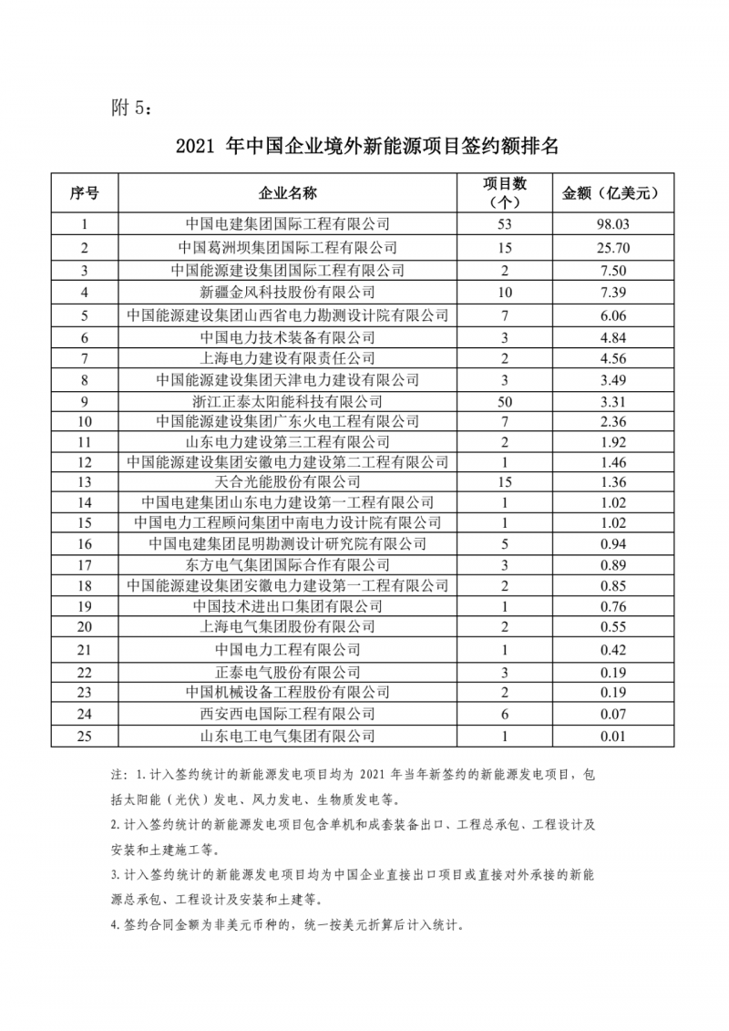 據(jù)了解,計(jì)入簽約統(tǒng)計(jì)的新能源發(fā)電項(xiàng)目包含單機(jī)和成套裝備出口、工程總承包、工程設(shè)計(jì)及安裝和土建施工等;新能源發(fā)電項(xiàng)目均為中國(guó)企業(yè)直接出口項(xiàng)目或直接對(duì)外承接的新能源總承包、工程設(shè)計(jì)及安裝和土建等。