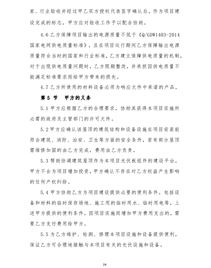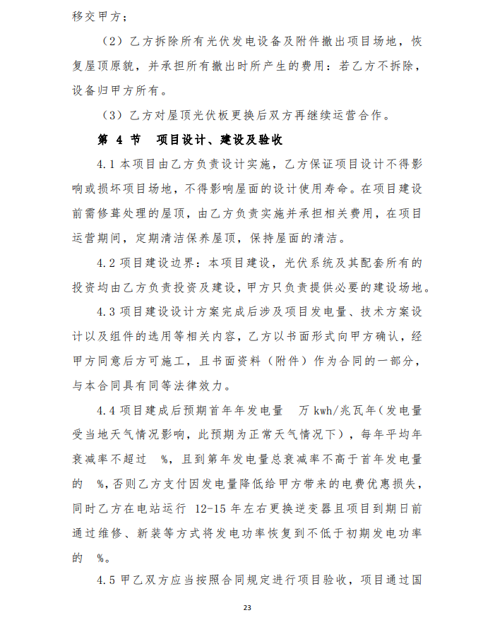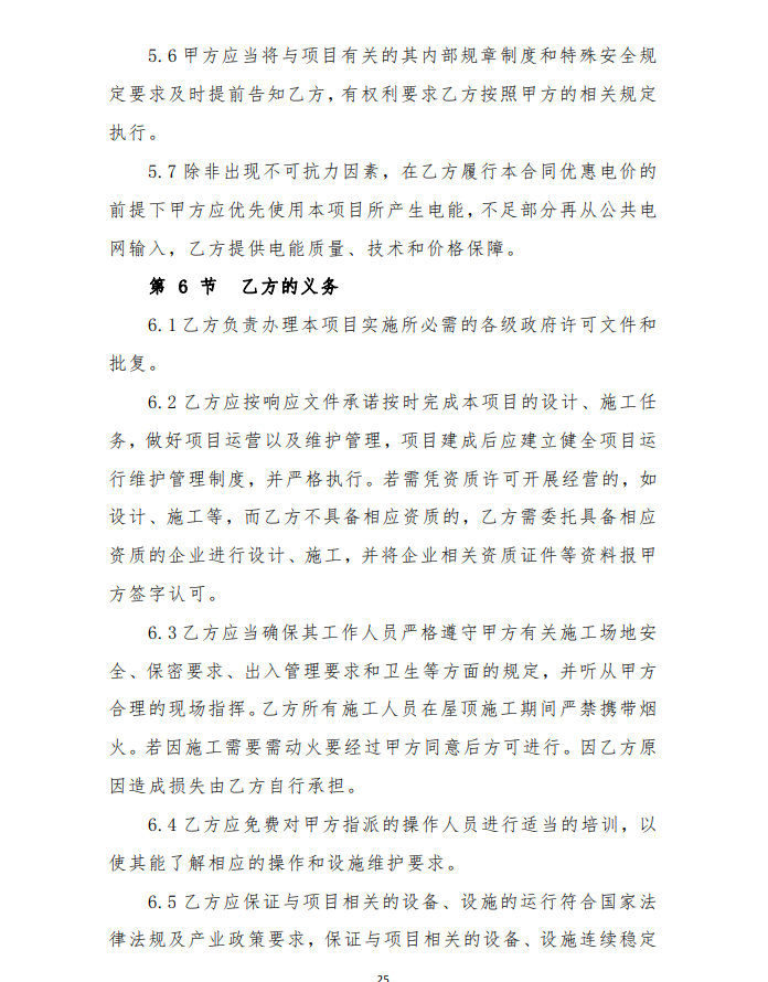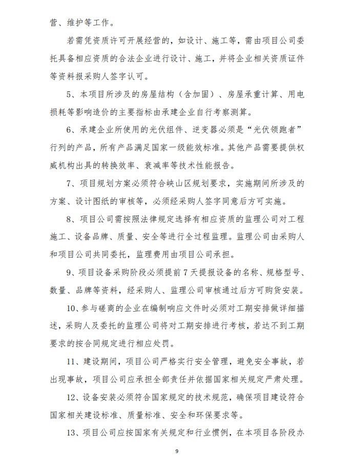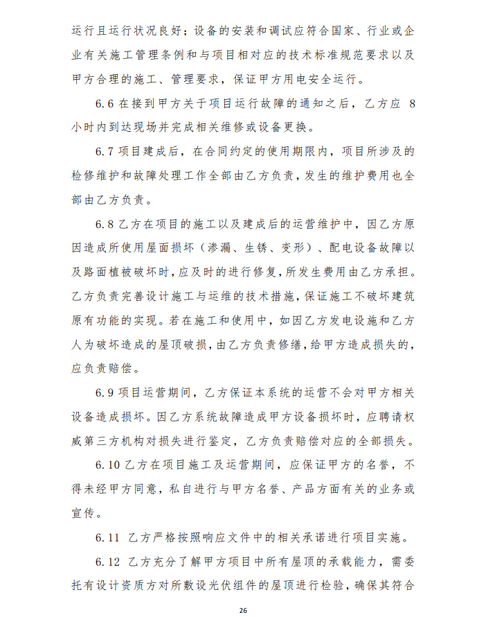 4、由于光伏發(fā)電項目運行生命周期長,安裝用戶點多,面大,為保障安裝戶的權(quán)益,維護社會穩(wěn)定,建設(shè)企業(yè)要提供明確的長期運維方案及保障費用,具體以運維合同為準(zhǔn)。
