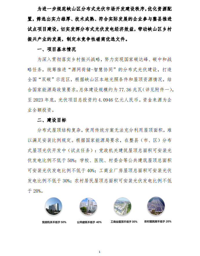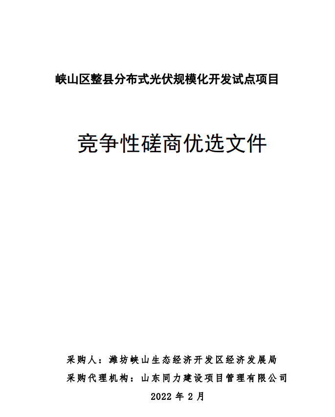峽山區(qū)整縣分布式光伏規(guī)模化開發(fā)試點項目競爭性磋商二次公告