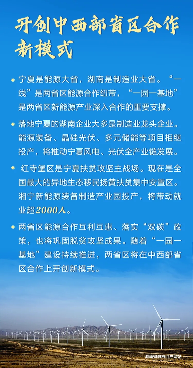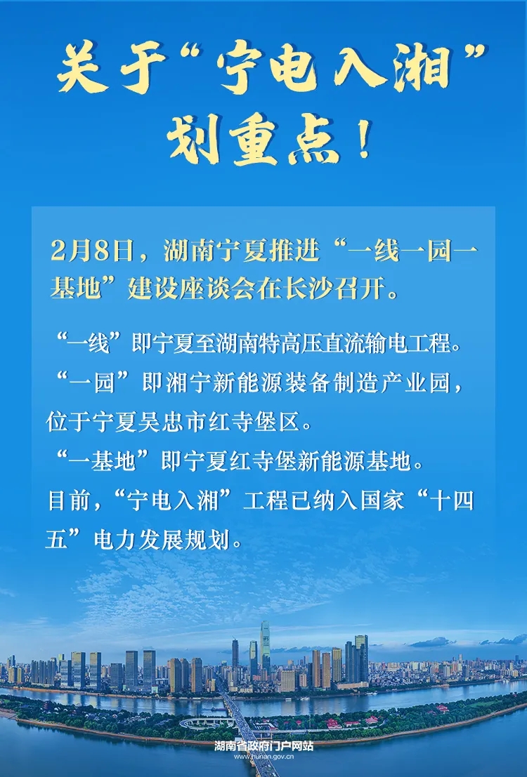 2月8日,湖南省政府與寧夏回族自治區(qū)政府在長沙舉行座談會,共商加快推進“一線一園一基地”建設(shè)。“一線”為寧夏至湖南特高壓直流輸電工程,“一園”為湘寧新能源裝備制造產(chǎn)業(yè)園,“一基地”為寧夏紅堡寺新能源基地。