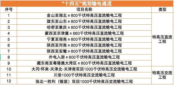除上述12條特高壓外,結(jié)合可再生能源規(guī)劃以及送端區(qū)域的可再生能源資源稟賦和建設(shè)條件,“十四五”期間,仍將新增輸電通道以及配套電源規(guī)模。