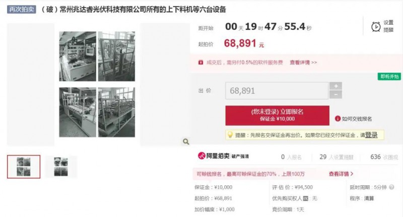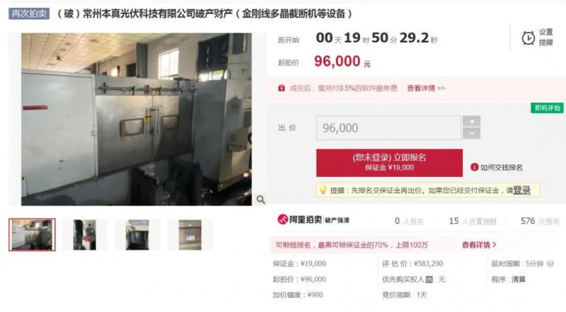近日,一批土地使用權(quán)、光伏電站機(jī)器設(shè)備及金剛線多晶截?cái)鄼C(jī)、上下料機(jī)、太陽(yáng)能晶片計(jì)數(shù)儀等光伏設(shè)備即將在阿里司法拍賣平臺(tái)進(jìn)行拍賣。