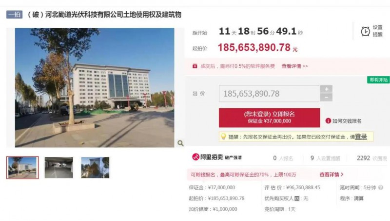 原標(biāo)題:約2.24億元起拍價(jià) 一批光伏設(shè)備、土地使用權(quán)及建筑物即將拍賣