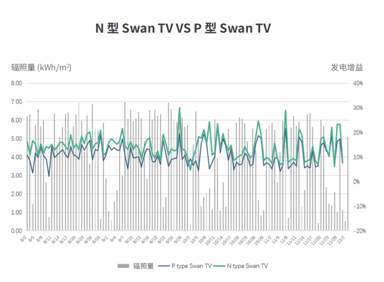 技術(shù)人員指出,N型TOPCon已經(jīng)在量產(chǎn)效率、成本控制和市場(chǎng)份額上取得明顯優(yōu)勢(shì),高效N型產(chǎn)品將加速新能源大基地項(xiàng)目高質(zhì)量落地。長(zhǎng)遠(yuǎn)來(lái)看,TOPCon電池正處于高速發(fā)展期,其效率的不斷提升會(huì)不斷拉大N、P型組件的功率差異,制造工藝的優(yōu)化、新型技術(shù)的應(yīng)用亦會(huì)不斷擴(kuò)大其在成本端的優(yōu)勢(shì)。“在山東、浙江、海南的實(shí)證數(shù)據(jù)表明,同尺寸N型雙面組件在不同環(huán)境、不同時(shí)段、不同天氣下都能帶來(lái)更高發(fā)電量,平均比P型雙面組件高2.95%-10.26%。得益于更低的溫度系數(shù),隨著太陽(yáng)輻照度的增加,N型組件的輸出功率呈線(xiàn)性增加。此外,在低輻照度下,得益于更好的弱光性表現(xiàn),N型組件能提供更高輸出功率以及更好的標(biāo)準(zhǔn)化輸出功率。”