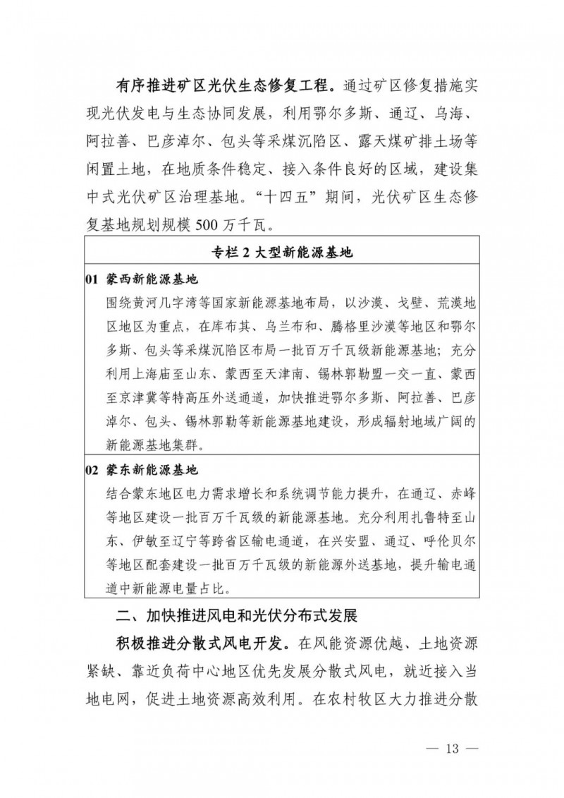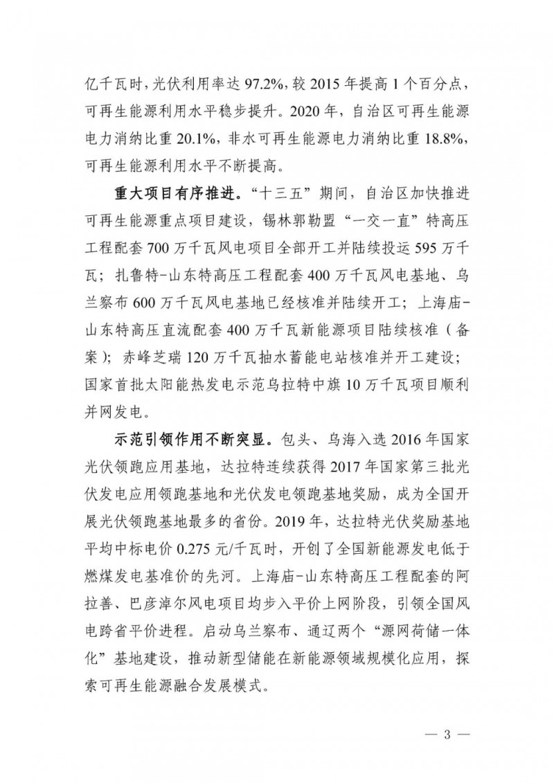 3月3日,內(nèi)蒙古自治區(qū)能源局網(wǎng)站公開發(fā)布了“內(nèi)蒙古自治區(qū)能源局關(guān)于印發(fā)《內(nèi)蒙古自治區(qū)“十四五”可再生能源發(fā)展規(guī)劃》的通知(內(nèi)能新能字〔2022〕103號)”,根據(jù)規(guī)劃,“十四五”時期,我區(qū)可再生能源主要發(fā)展目標如下: