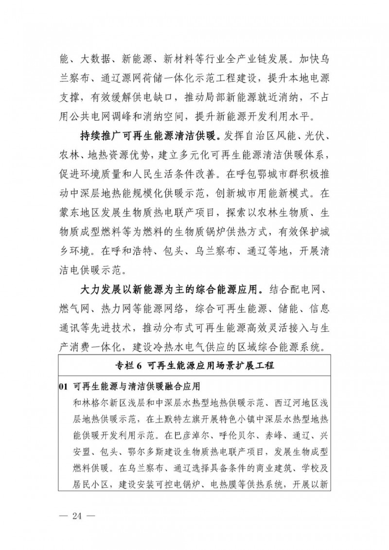 可再生能源供熱目標。自治區(qū)地?zé)崮?、生物質(zhì)能、 太陽能供暖和新能源電力供暖利用規(guī)模顯著提升。全區(qū)可再生能源供暖面積達到 3600 萬平方米,“十四五”期間新增2500 萬平方米。