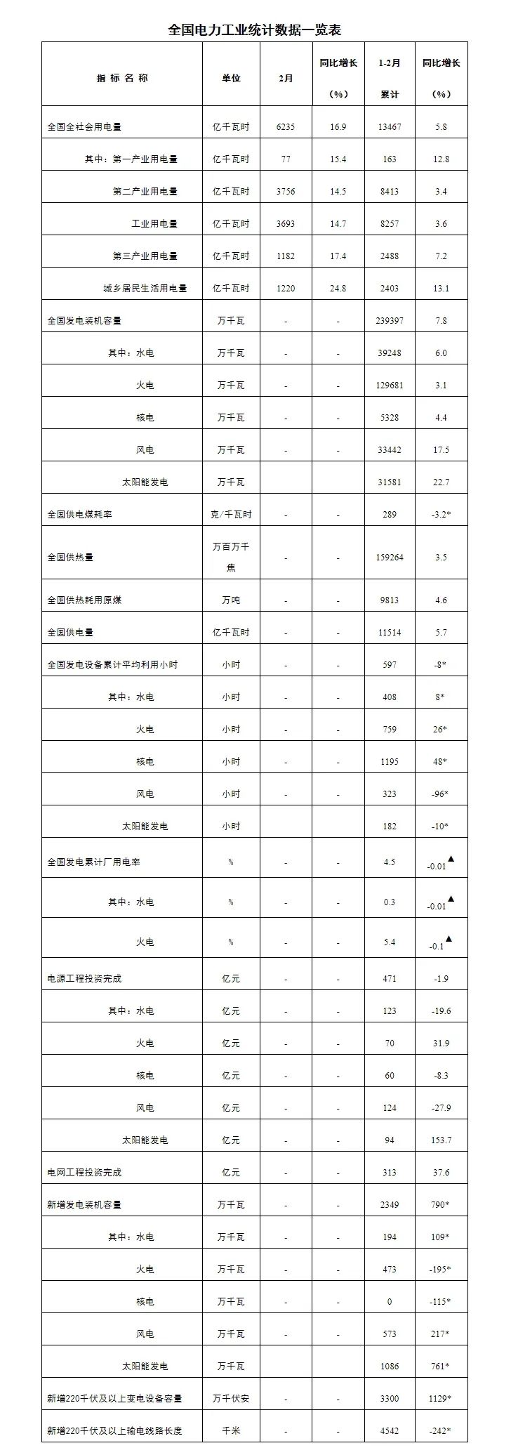注:1.全社會用電量為全口徑數(shù)據(jù),全國供電量為調(diào)度口徑數(shù)據(jù)。2.“同比增長”列中,標*的指標為絕對量;標▲的指標為百分點。