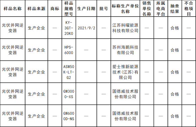 本次光伏逆變器產(chǎn)品監(jiān)督抽查在生產(chǎn)企業(yè)抽樣5批次,經(jīng)檢驗(yàn),合格5批次,合格率為100%。