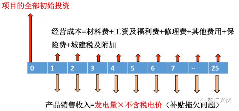 1.“1kW年收益”與收益率線性相關(guān)項(xiàng)目全部投資內(nèi)部收益率,即凈現(xiàn)金流為零時(shí)的折現(xiàn)值。項(xiàng)目的凈現(xiàn)金流表示如下圖所示。
