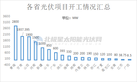 第一季度,淡季不淡。國家能源局通報數(shù)據(jù)顯示,1~2月新增光伏裝機(jī)10.86GW,同比增長234%,3月繼續(xù)高歌猛進(jìn)。據(jù)北極星太陽能光伏網(wǎng)跟蹤統(tǒng)計,截至目前已經(jīng)有52個、總規(guī)模約12.4GW光伏項(xiàng)目陸續(xù)發(fā)布開工信息。分地區(qū)來看,其中青海、甘肅、山西、河南、新疆5地光伏開工項(xiàng)目均超1GW,海南、湖南開工項(xiàng)目均超300MW。