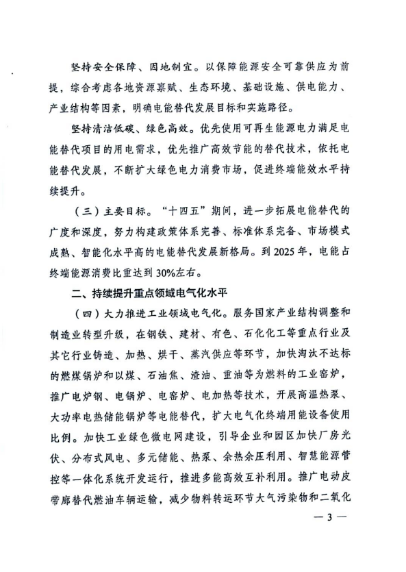 目標(biāo)稱,到2025年,電能占終端能源消費比重達到30%左右。