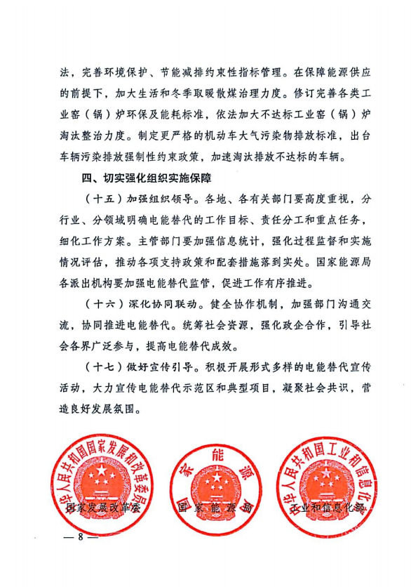 日前,國家發(fā)改委等十部委聯(lián)合發(fā)布《關(guān)于進一步推進電能替代的指導(dǎo)意見》。