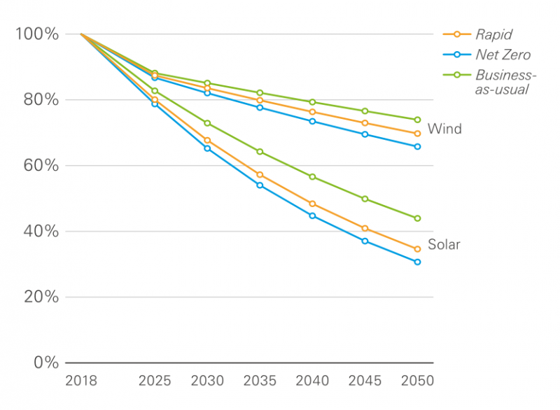 圖3:未來(lái)30年光伏成本下降曲線,資料來(lái)源:BP Energy