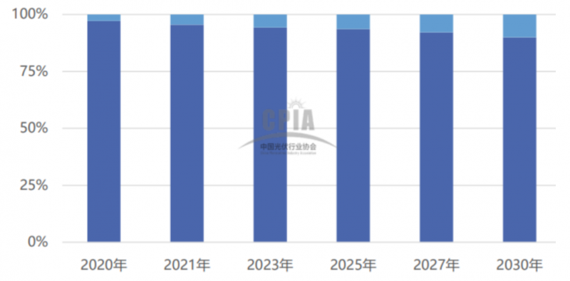 圖12:國(guó)內(nèi)西門(mén)子法(深藍(lán))和顆粒硅(淺藍(lán))占比,資料來(lái)源:CPIA,華安證券