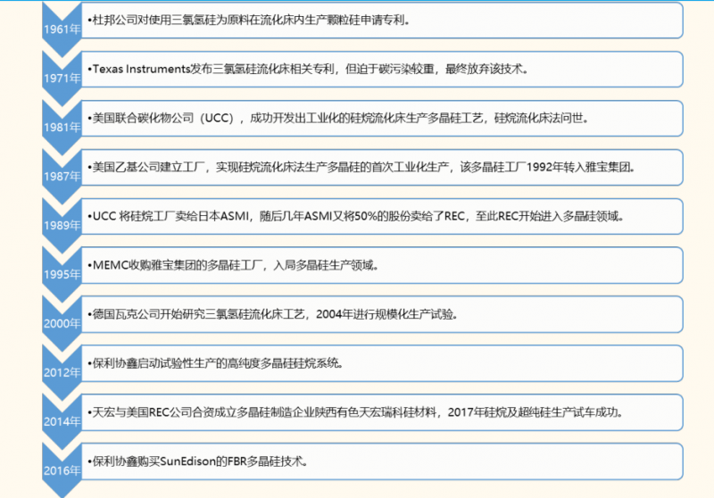 圖8:流化床法制備多晶硅技術(shù)的發(fā)展歷程,資料來(lái)源:《當(dāng)代多晶硅產(chǎn)業(yè)發(fā)展概論》,國(guó)金證券