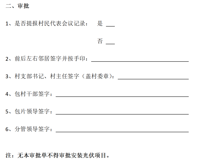 近日,山東地區(qū)某鄉(xiāng)鎮(zhèn)一位Y姓光伏從業(yè)者向索比光伏網(wǎng)爆料稱,當?shù)厮泄夥椖可陥筮^程均需填寫《安裝方案審批單》。從他提供的截圖看,一個戶用光伏系統(tǒng)的安裝,在進入當?shù)毓╇娋种埃枰?步才能完成: