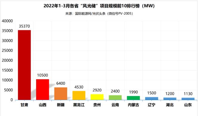 儲(chǔ)能將成為眾多風(fēng)電、光伏項(xiàng)目的標(biāo)配。據(jù)國(guó)際能源網(wǎng)/光伏頭條(pv-2005)不完全統(tǒng)計(jì),2022年1-3月,全國(guó)共簽約/規(guī)劃風(fēng)光儲(chǔ)項(xiàng)目29個(gè),已明確的項(xiàng)目規(guī)模為69.29GW,已明確的投資金額為1789.42億元。