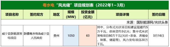 截至2022年3月31日,粵水電共簽約(規(guī)劃)1個(gè)風(fēng)光儲(chǔ)項(xiàng)目,項(xiàng)目規(guī)模為1.05GW,投資金額63億元。