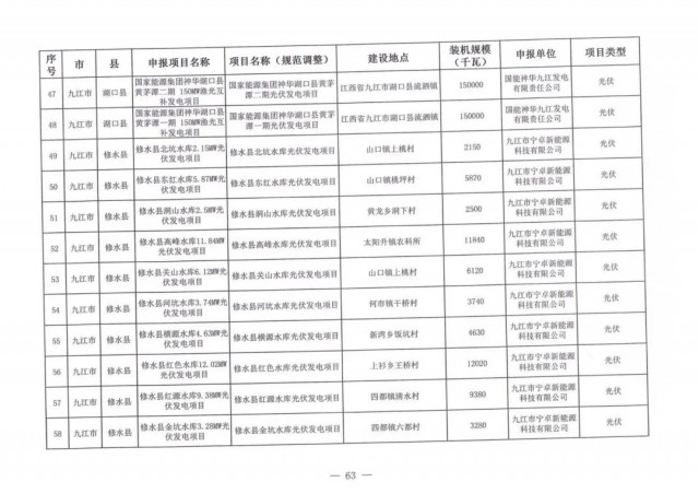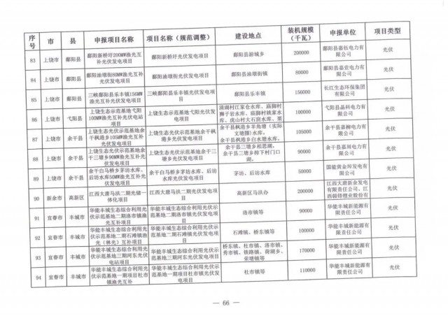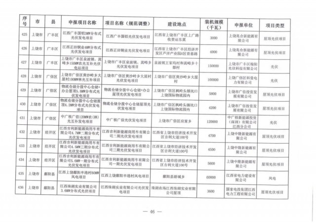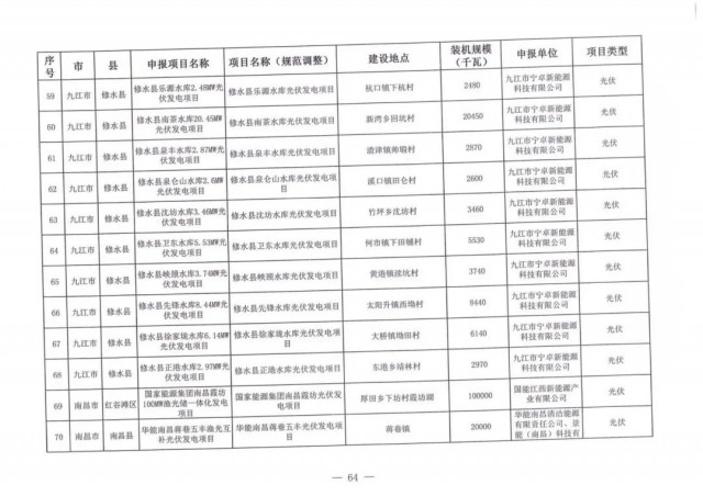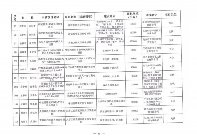 本次江西調(diào)整的納規(guī)風(fēng)光項目總規(guī)模為41.816GW,光伏規(guī)模33.06GW,風(fēng)電規(guī)模為8.754GW,總計687個項目。其中,光伏又分為集中式、分布式和水面光伏,規(guī)模分別為23.885GW、0.955GW、8.22GW。