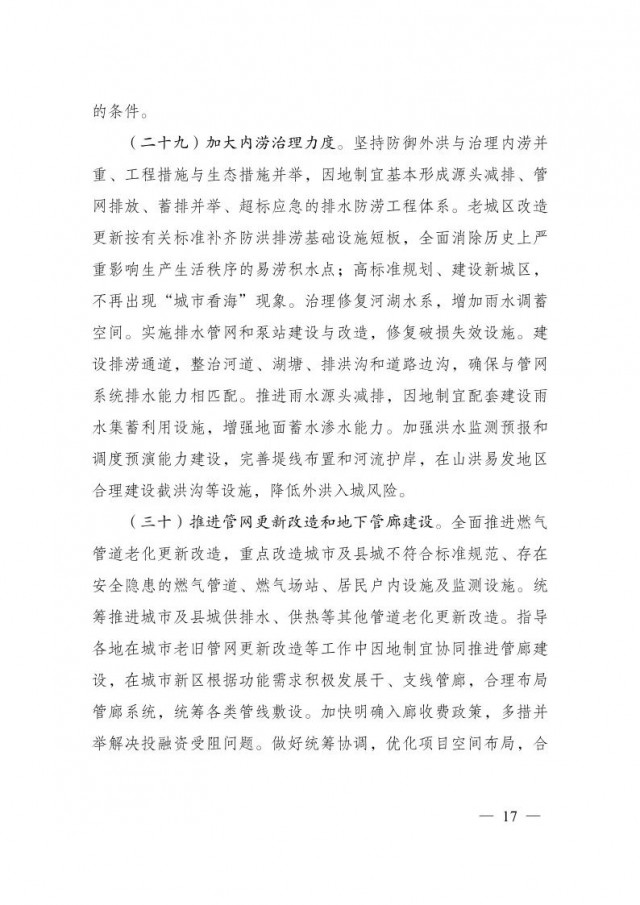 《方案》提出,到2025年,城市可持續(xù)發(fā)展能力明顯增強(qiáng),城鎮(zhèn)開(kāi)發(fā)邊界全面劃定,新增建設(shè)用地規(guī)??刂圃?950萬(wàn)畝以內(nèi),城市內(nèi)澇治理取得明顯成效,城市燃?xì)獾裙艿览匣赂脑焐钊胪七M(jìn),能源資源利用效率大幅提升,城市黑臭水體基本消除,地級(jí)及以上城市空氣質(zhì)量?jī)?yōu)良天數(shù)比率提高到87.5%,城市建成區(qū)綠化覆蓋率超過(guò)43%。系統(tǒng)完備、科學(xué)規(guī)范、運(yùn)行有效的城市治理體系基本建立,治理能力明顯增強(qiáng)。