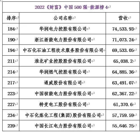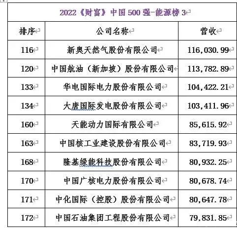 同時,中石化集團、中石油集團、中海油集團為代表的“三桶油”,以及中國華能、中國華電、中國大唐、國家電投、國家能源集團等五大發(fā)電集團,國家電網(wǎng)、中煤集團、國投集團、中核集團、中國廣核集團、等能源央企的上市公司平臺紛紛上榜,華潤集團旗下更有2家上市平臺入選,分別為華潤電力和華潤燃氣。