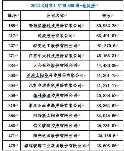7月12日,2022年《財富》中國500強排行榜揭曉,有82家能源企業(yè),13家光伏企業(yè)上榜。
