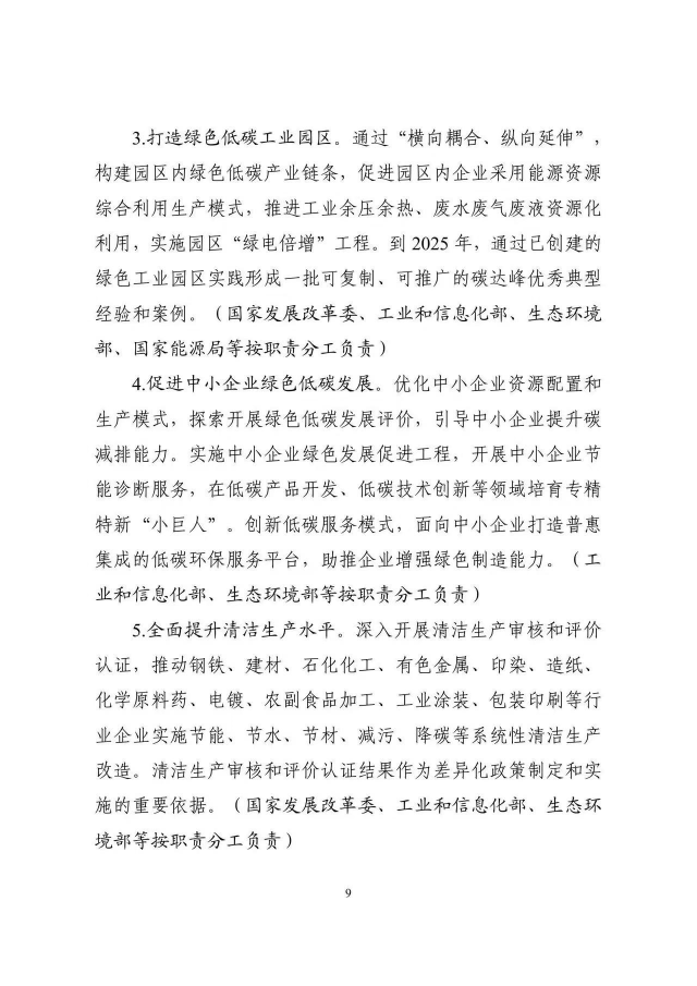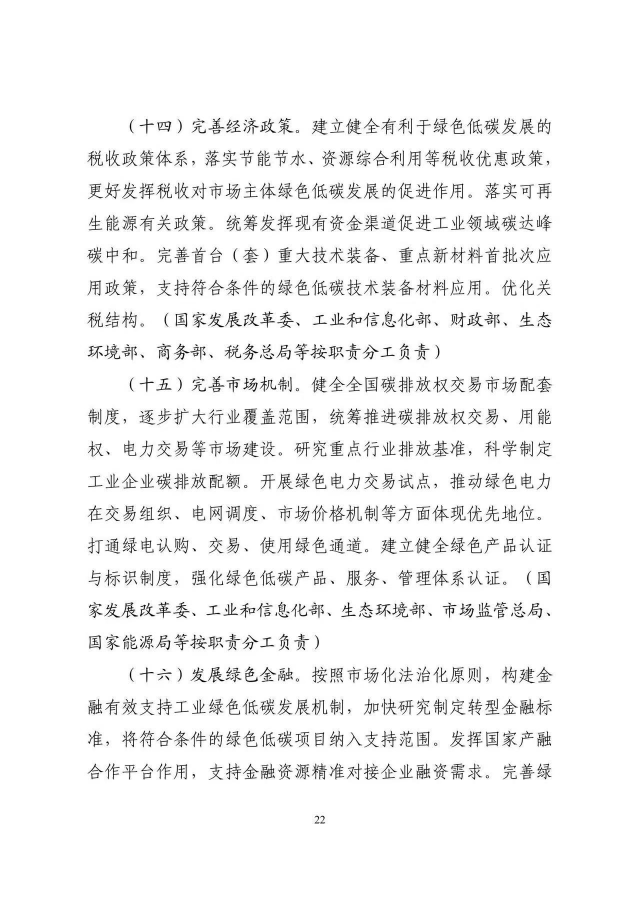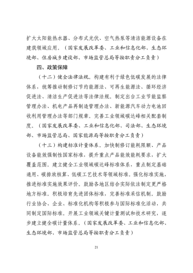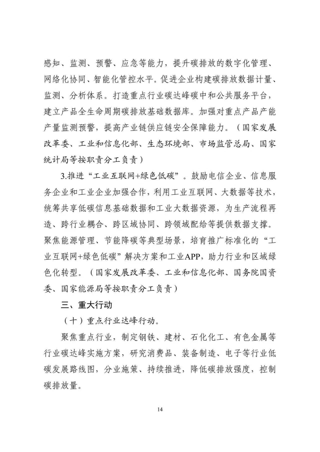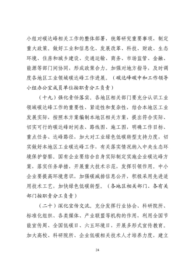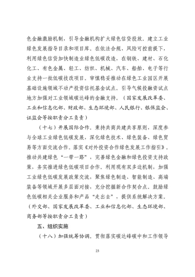 《工業(yè)領域碳達峰實施方案》已經(jīng)碳達峰碳中和工作領導小組審議通過,現(xiàn)印發(fā)給你們,請認真貫徹落實。