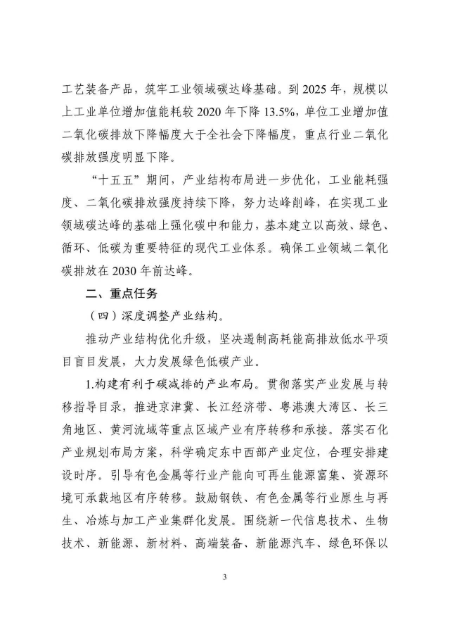 8月1日,工業(yè)和信息化部、國家發(fā)展改革委、生態(tài)環(huán)境部聯(lián)合發(fā)布《關于印發(fā)工業(yè)領域碳達峰實施方案的通知》。