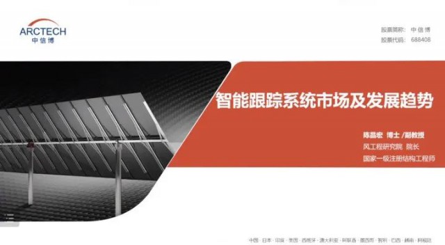 江蘇中信博新能源科技股份有限公司中信博風(fēng)工程研究院院長陳昌宏博士作智能跟蹤系統(tǒng)市場現(xiàn)狀與發(fā)展趨勢報(bào)告。陳院長從全球跟蹤支架市場格局與跟蹤支架技術(shù)發(fā)展趨勢兩個(gè)方面進(jìn)行了詳細(xì)的介紹。