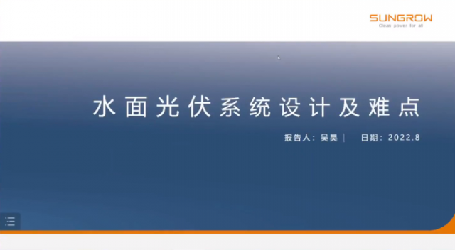 陽光水面光伏科技有限公司產(chǎn)品中心總監(jiān)吳昊作水面漂浮系統(tǒng)技術(shù)難點(diǎn)與分析。吳總監(jiān)全面講解了水面光伏的優(yōu)勢,水面光伏系統(tǒng)設(shè)計(jì)及難點(diǎn),并分享了一些典型案例經(jīng)驗(yàn)。