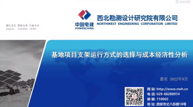 西北勘測設(shè)計(jì)研究院有限公司新能源工程院總工程師惠星作基地項(xiàng)目支架運(yùn)行方式的選擇與成本經(jīng)濟(jì)性分析。支架選擇與方案設(shè)計(jì)需要綜合考慮光伏電站所處區(qū)域位置、氣候、地貌地形等環(huán)境因素,同時(shí)還要考慮發(fā)電小時(shí)數(shù)、系統(tǒng)效率、并網(wǎng)情況等,惠星總工程師對各種情況下的光伏支架選擇與成本經(jīng)濟(jì)性分析進(jìn)行了深入分析。