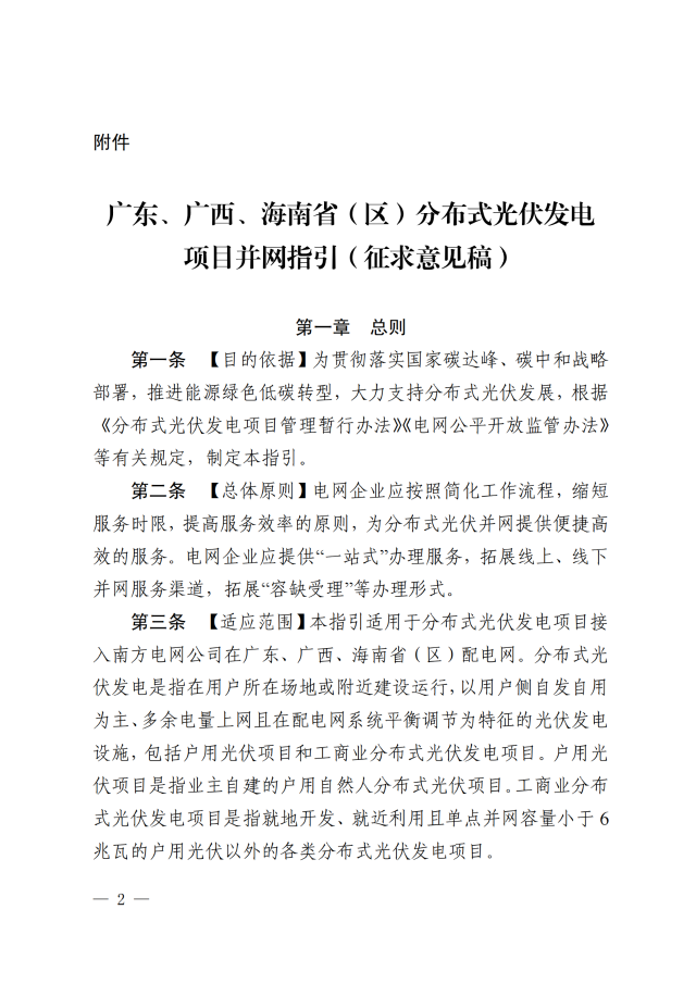 8月3日,國家能源局南方監(jiān)管局印發(fā)了關(guān)于公開征求《廣東、廣西、海南省(區(qū))分布式光伏發(fā)電項目并網(wǎng)指引(征求意見稿)》意見的通告。意見稿中對接入南方電網(wǎng)公司廣東、廣西、海南省(區(qū))配電網(wǎng)的分布式光伏發(fā)電項目進行了并網(wǎng)指引。