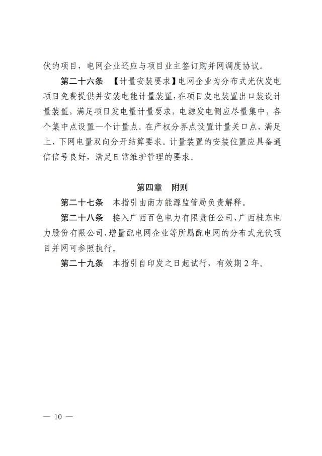 項目主要包括業(yè)主自建的戶用自然人分布式光伏項目和就地開發(fā)、就近利用且單點并網(wǎng)容量小于6兆瓦的戶用光伏以外的各類分布式光伏發(fā)電項目。文件從項目合規(guī)性、備案指引、運營模式、接入電壓、并網(wǎng)流程等方面進行了規(guī)定。本指引自印發(fā)之日起試行,有效期2年,內(nèi)容詳細,對全國其他地區(qū)具有參考意義。