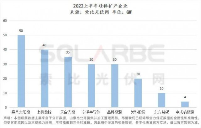其中,硅棒擴(kuò)產(chǎn)規(guī)模共計(jì)219GW,主要集中于以下8家企業(yè)。